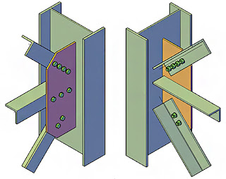 The most important thing to notice is the way in which they are connected. As we can clearly see, they are connected using bolts to the gusset plate, which in turn is welded to the main member.